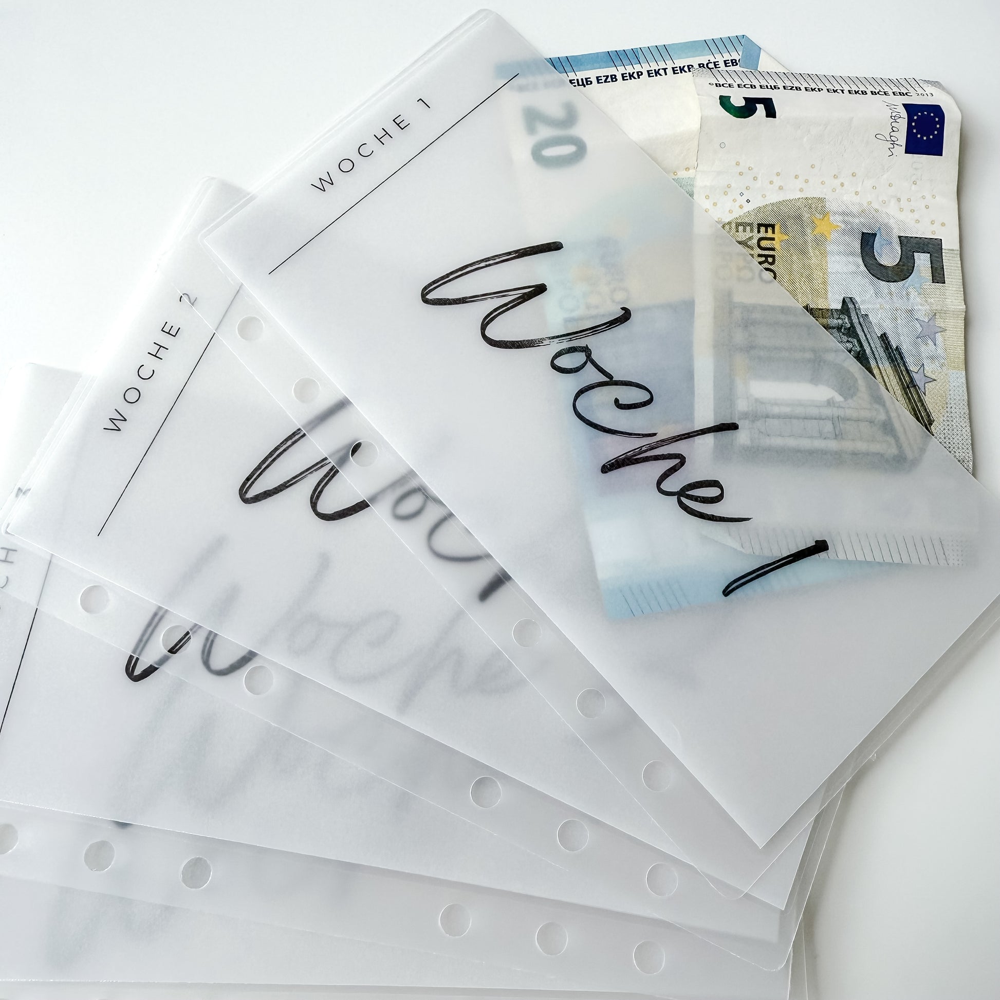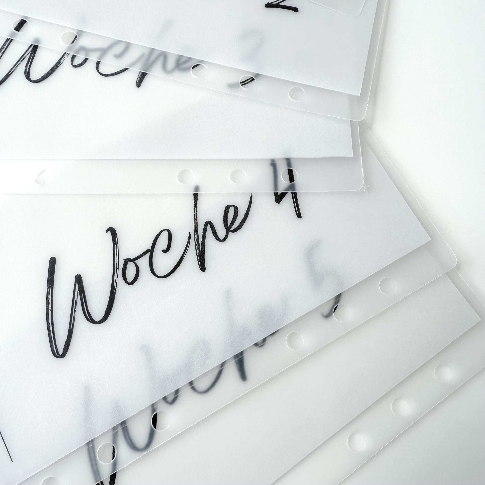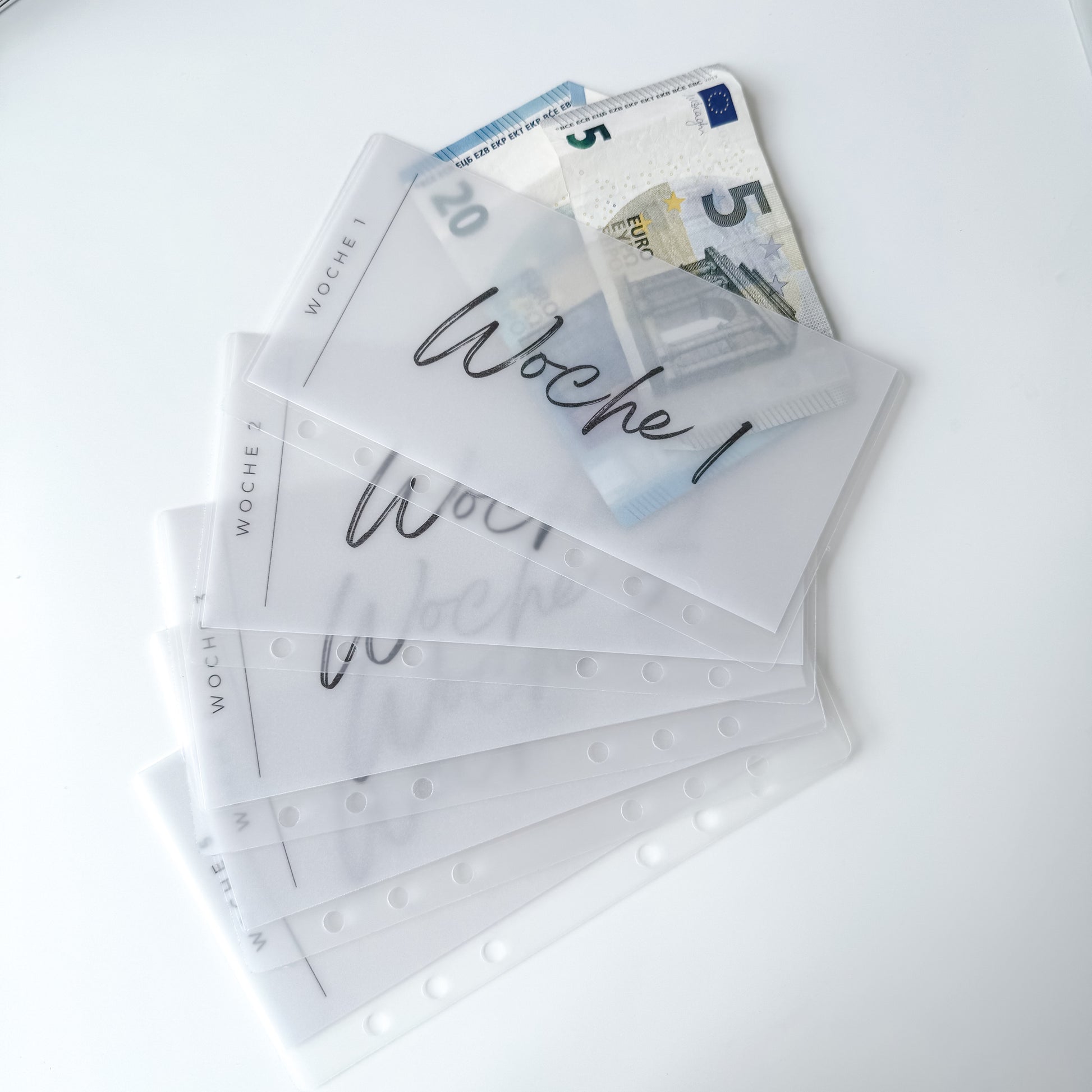Dieses Zipples Set hat integrierte Dashboards mit den einzelnen Wochenbeschriftungen 1-5 und sind passend für deinen A6 Binder.